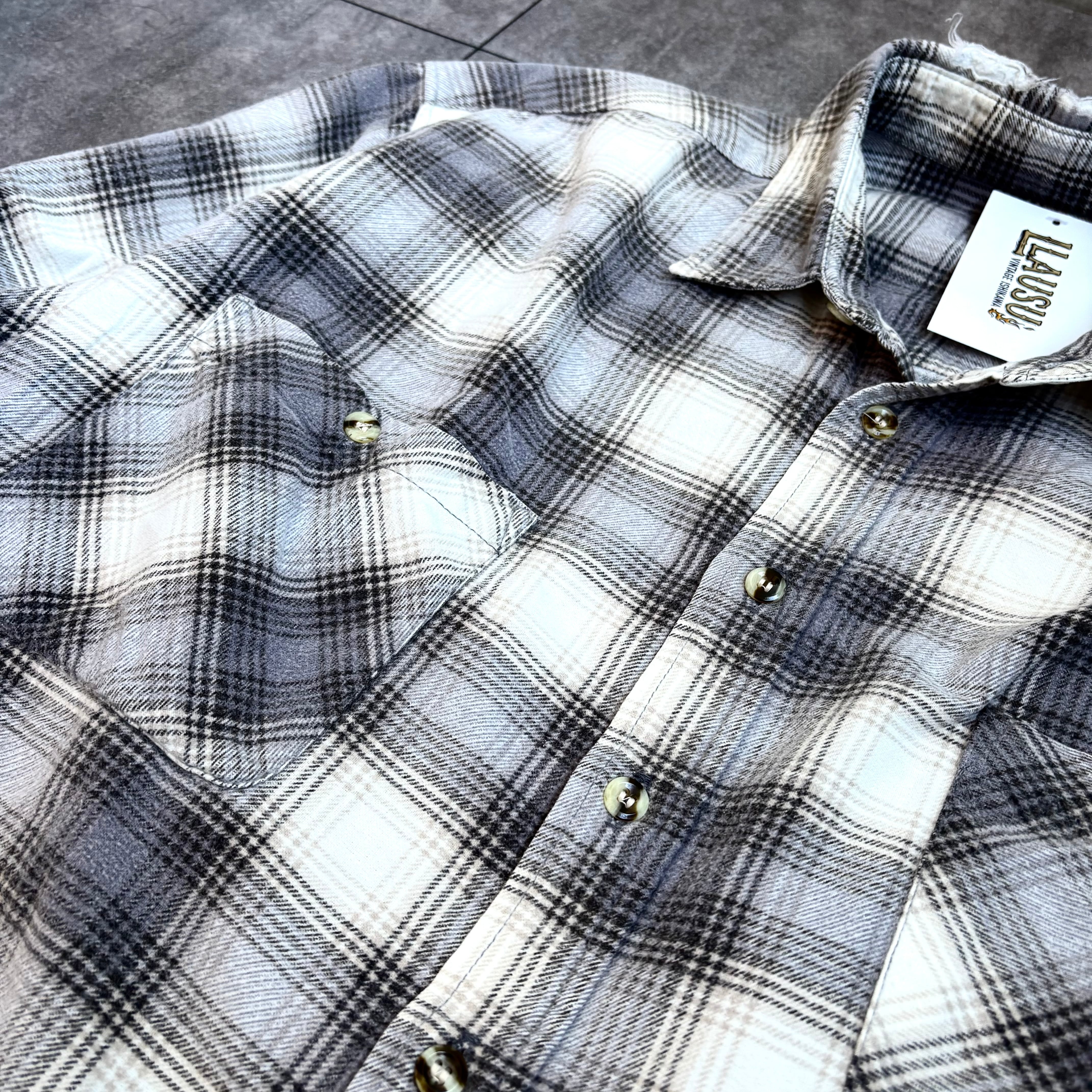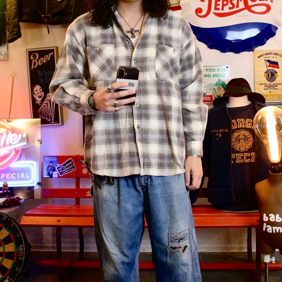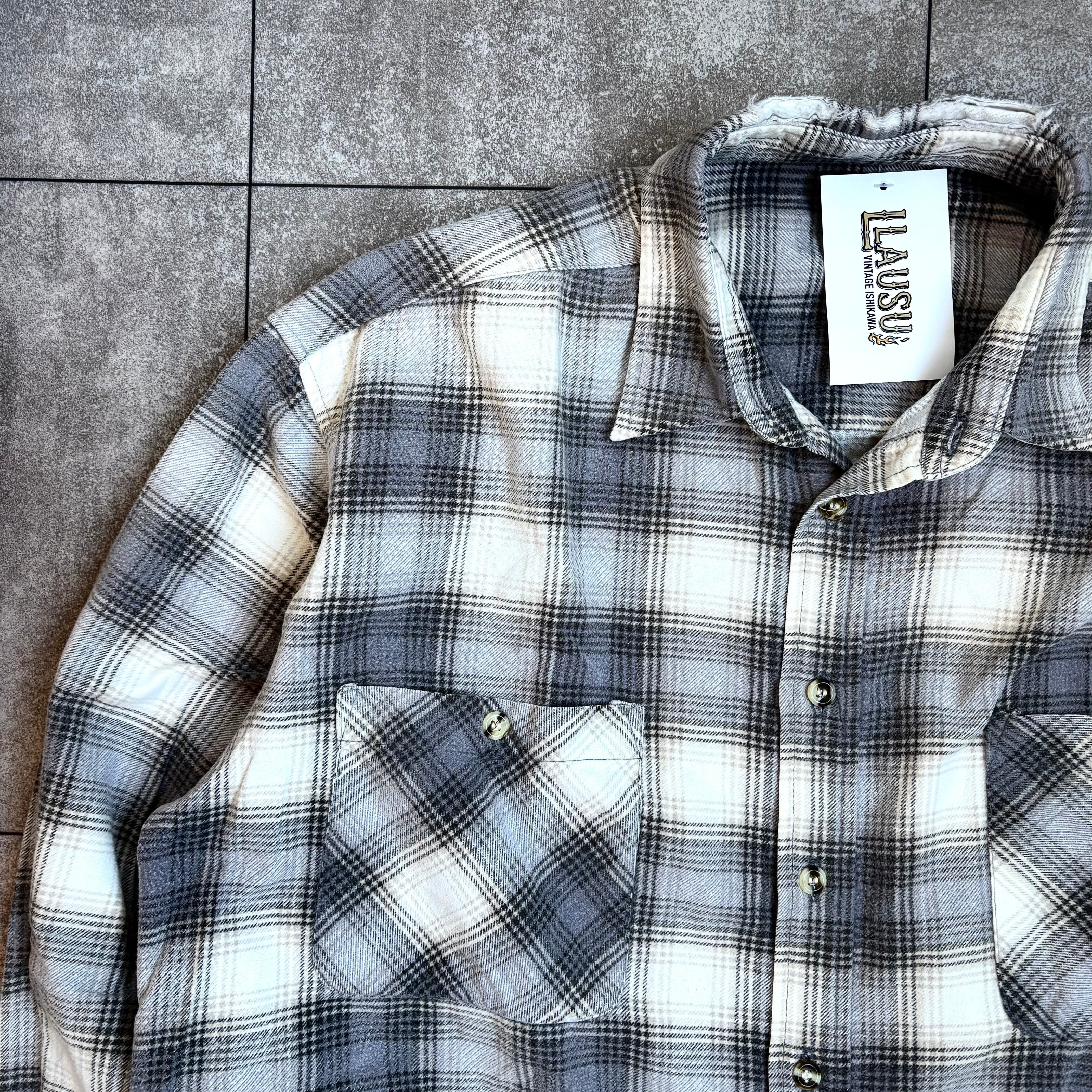 1980's〜1990's "Gray & White" Plaid Flannel Shirt