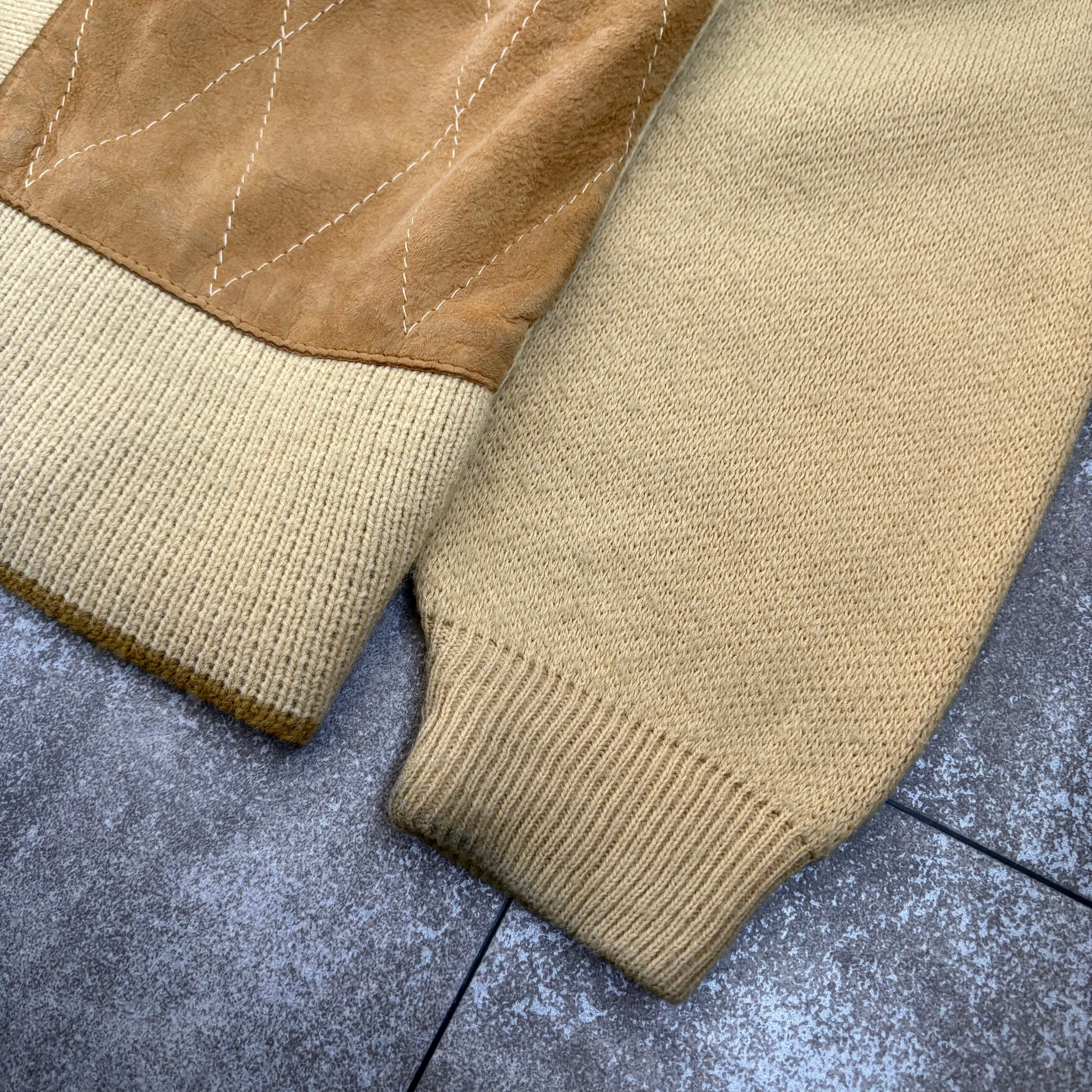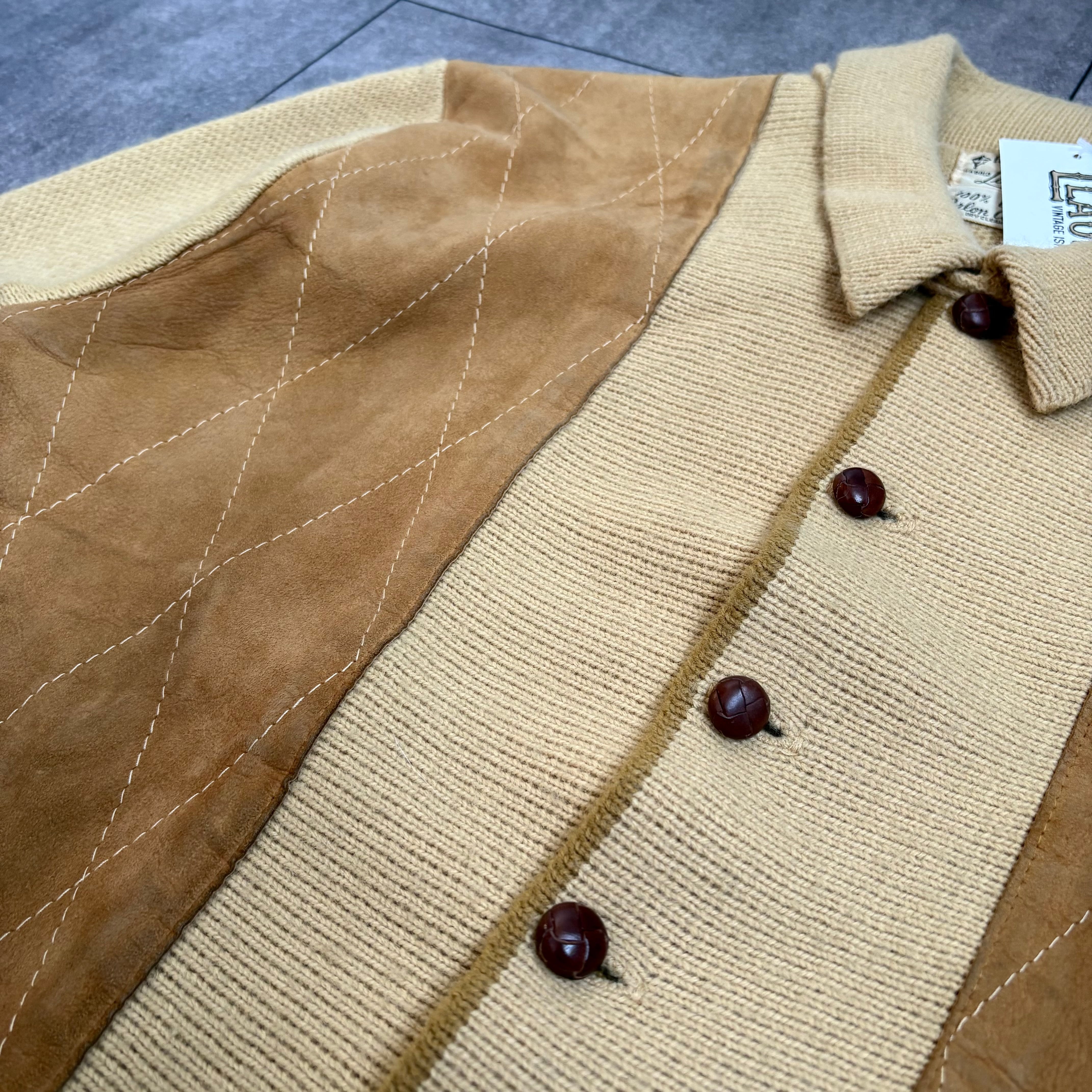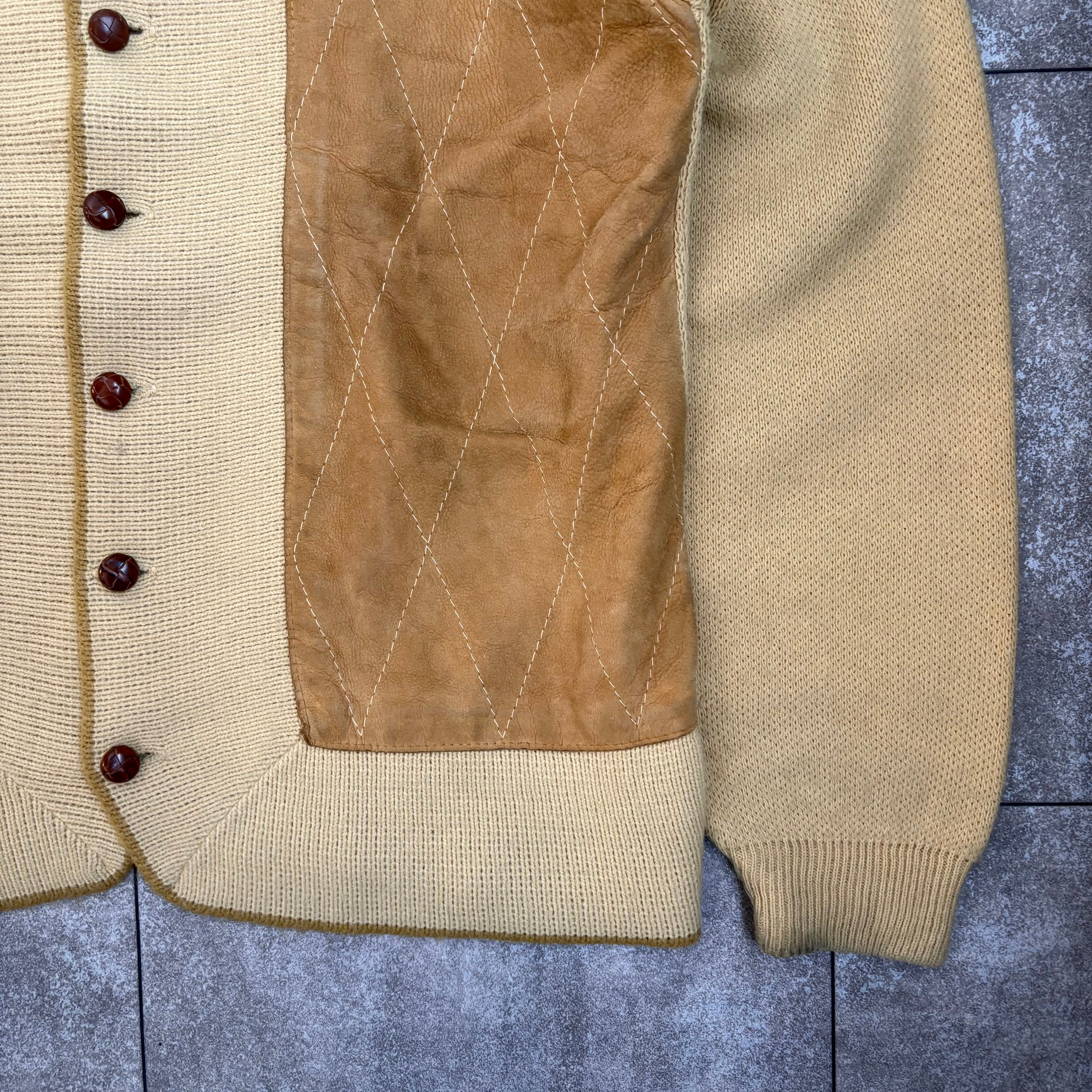 1960's "Towne&Village" Leather Panel Wool Knit Jacket