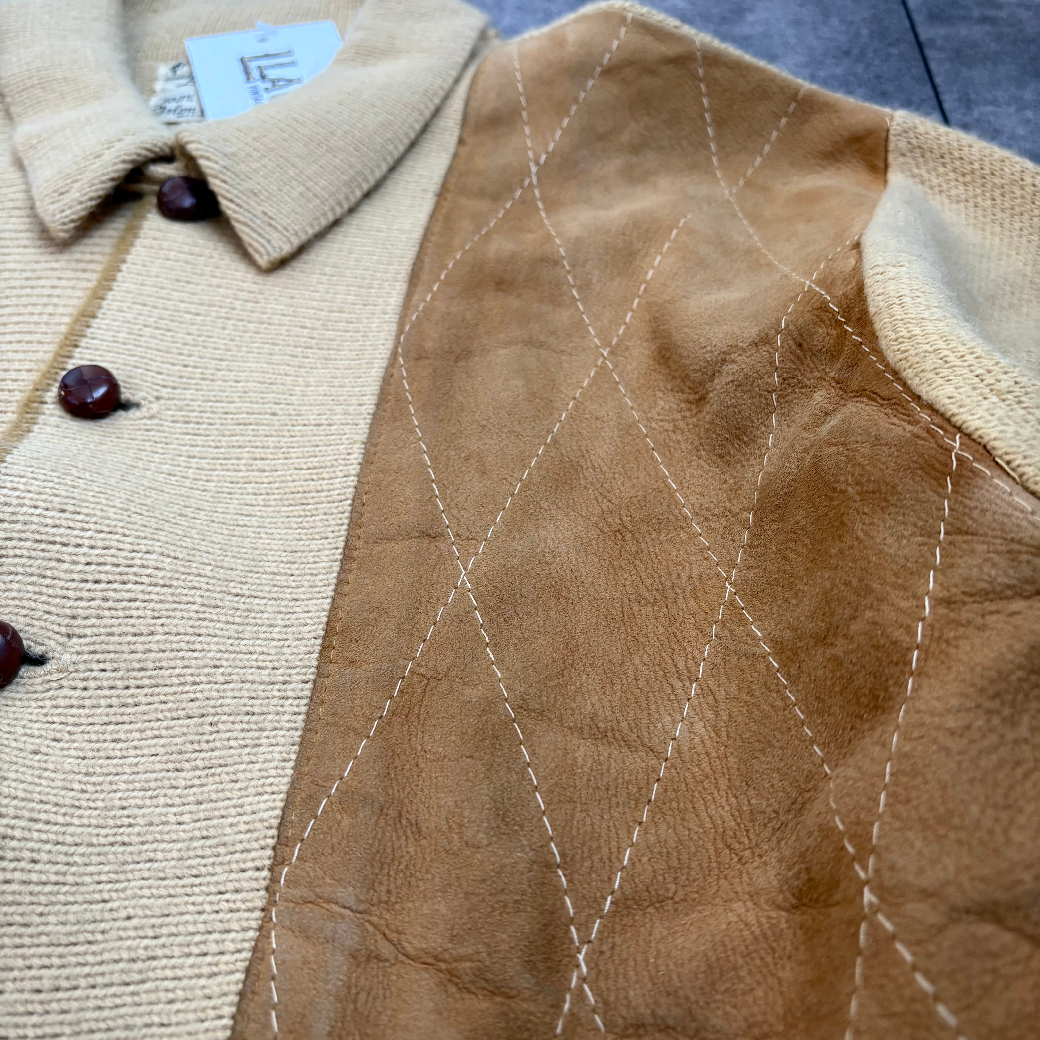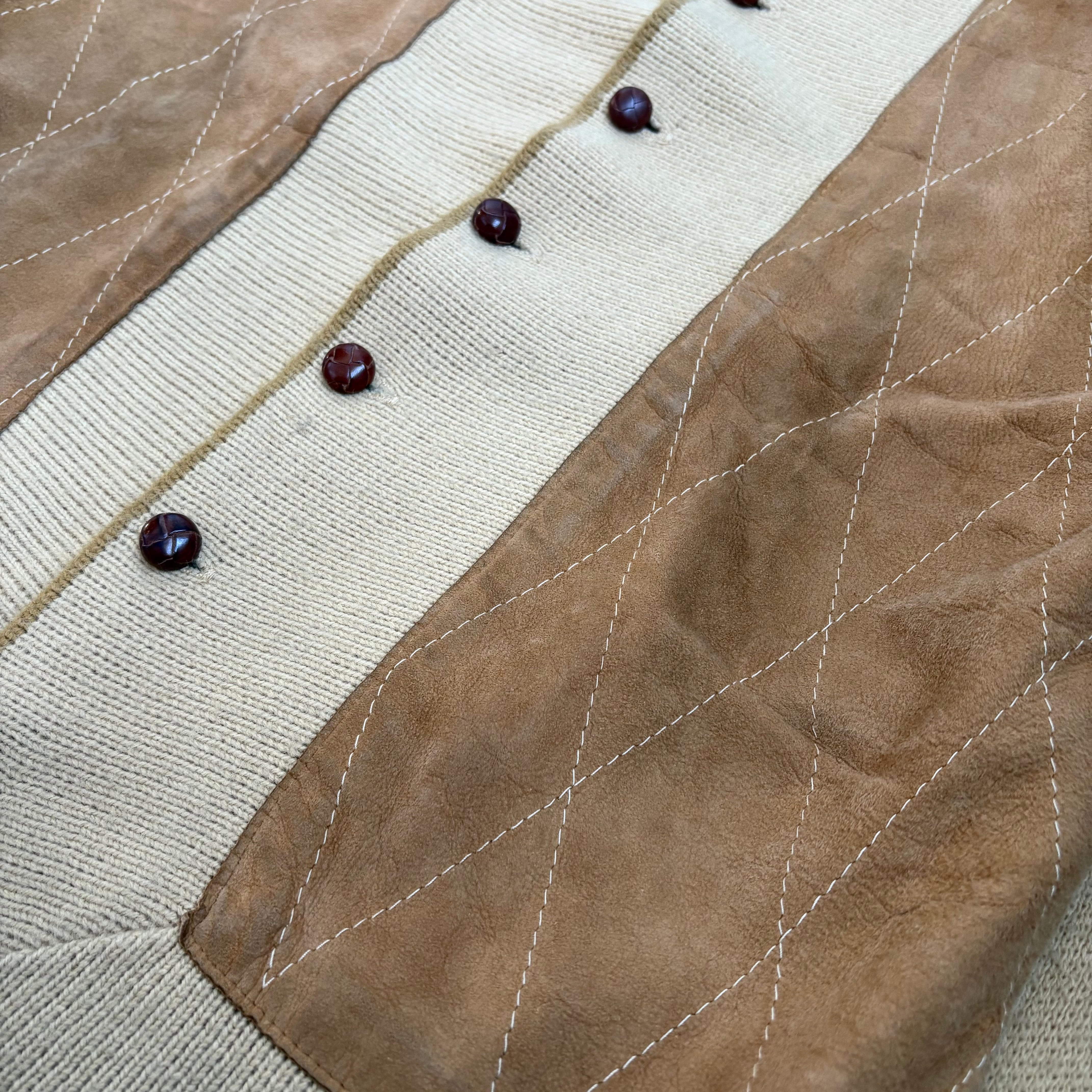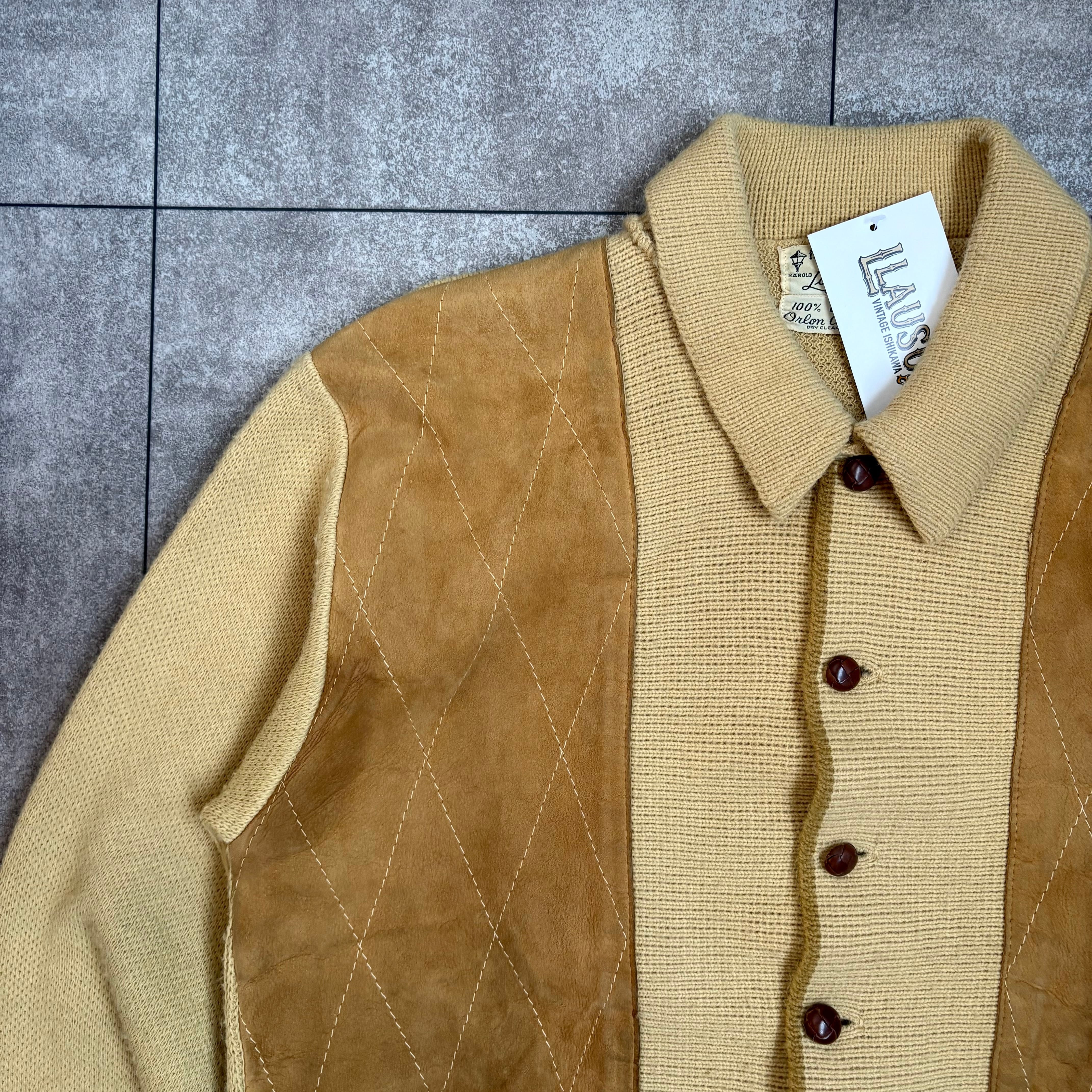 1960's "Towne&Village" Leather Panel Wool Knit Jacket