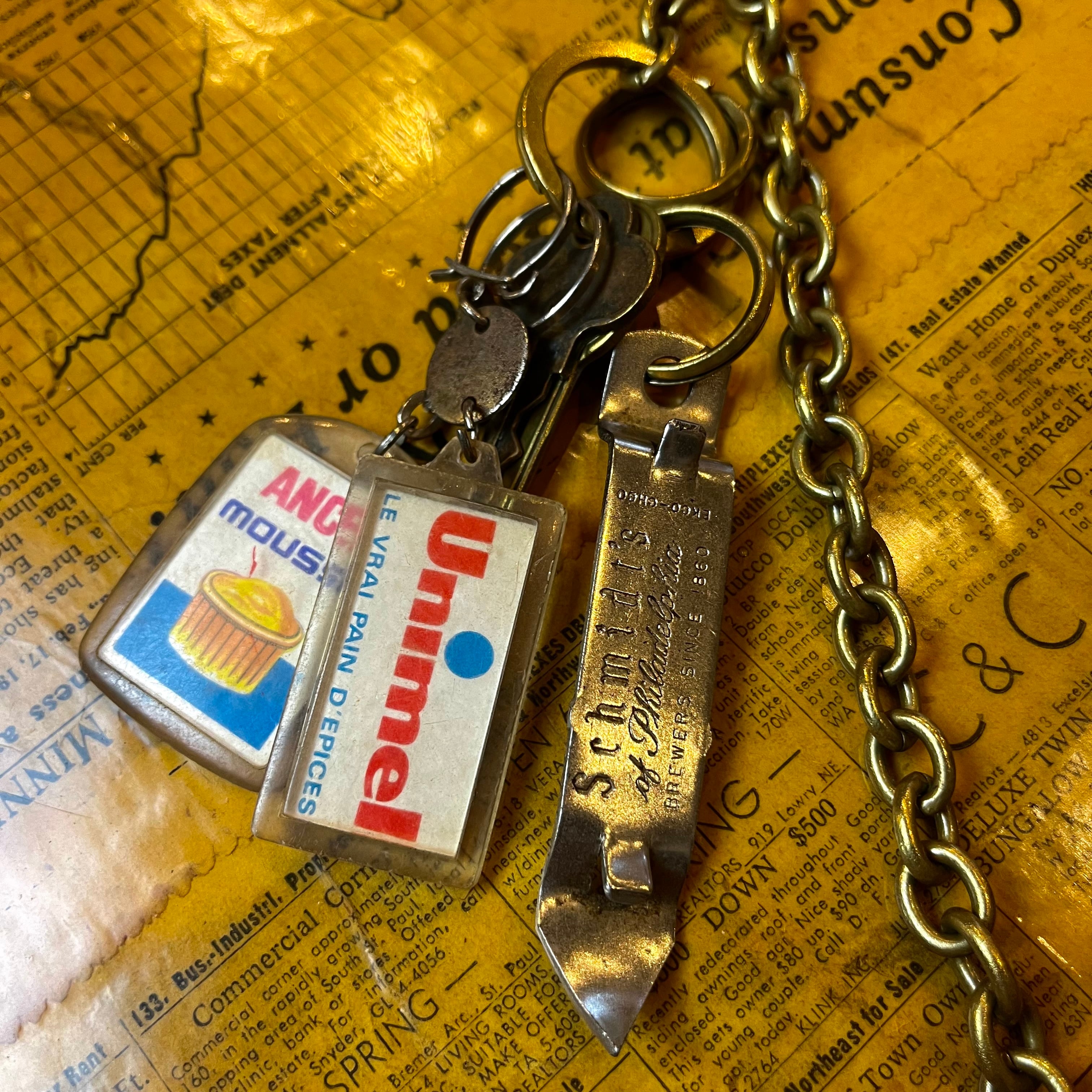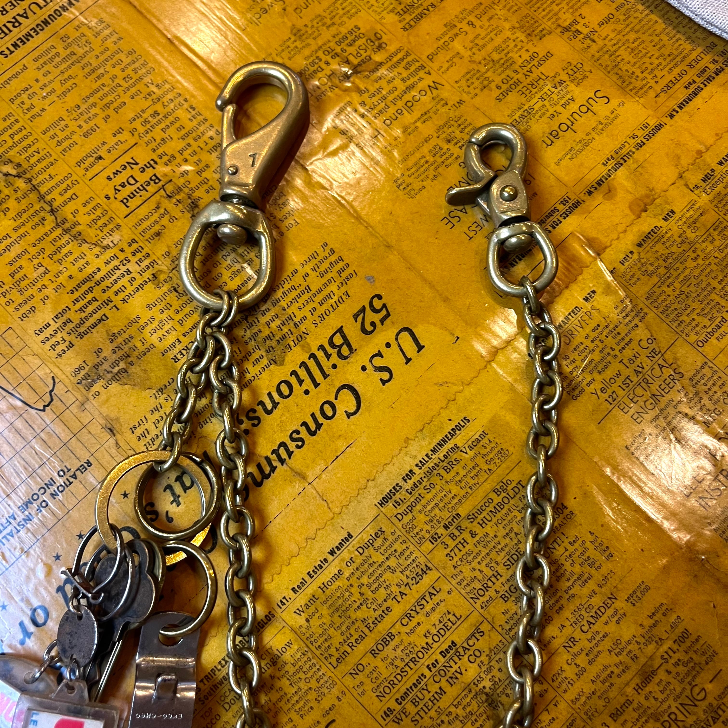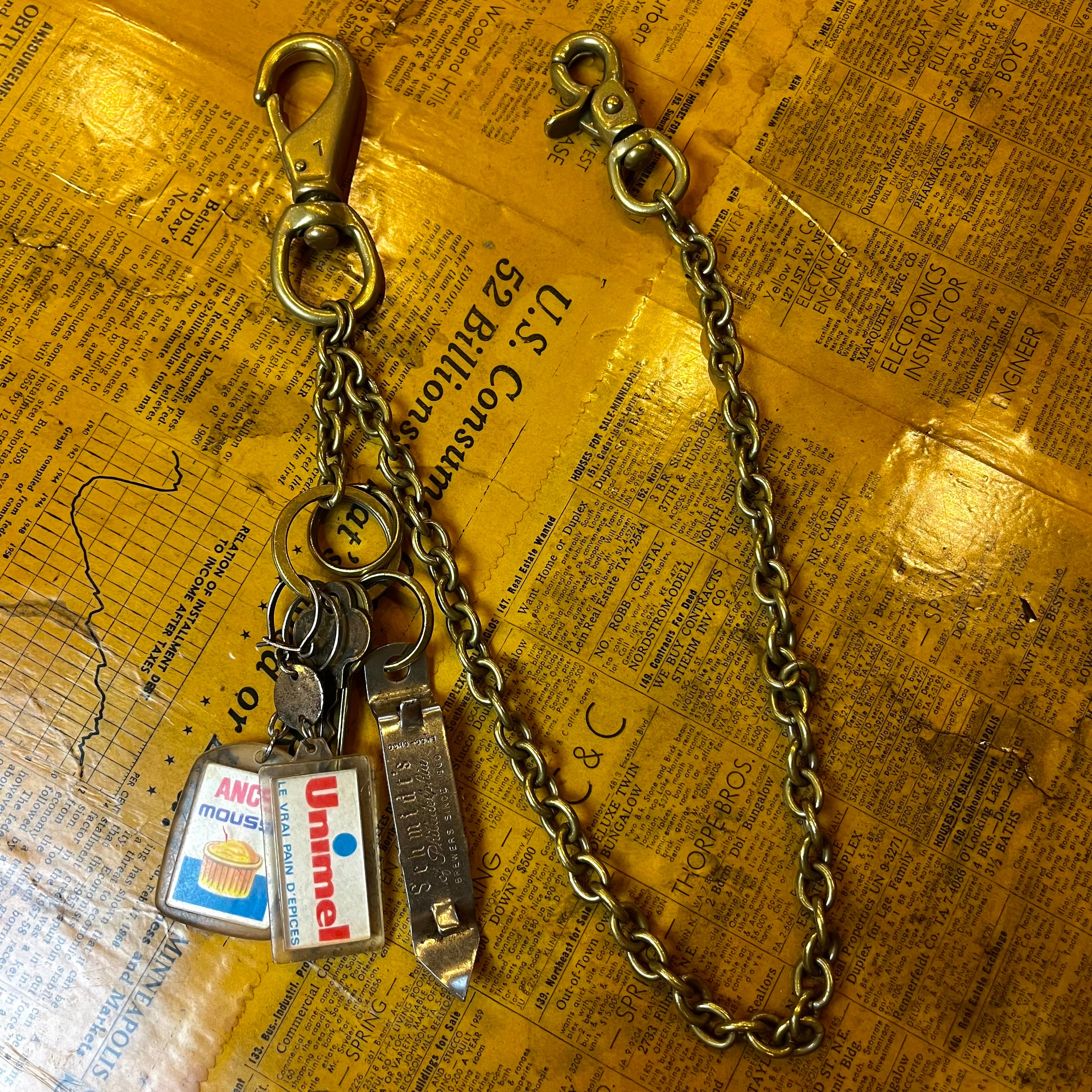 真鍮を使ったウォレットチェーンにvintageキーホルダー2つ厳選してカスタムしたアイテム。
