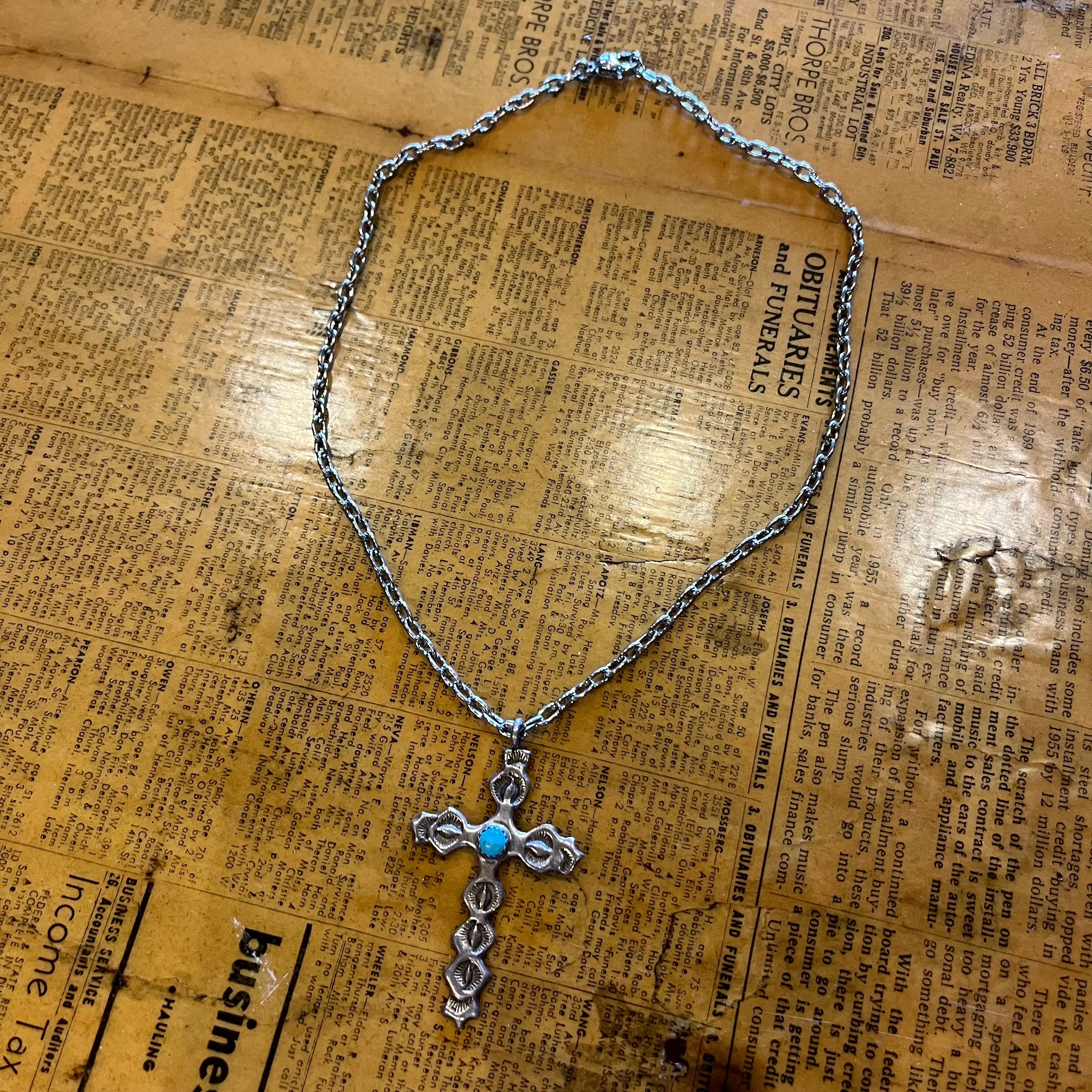 vintage "cross turquoise" silver necklace【sterling】【silver 925】