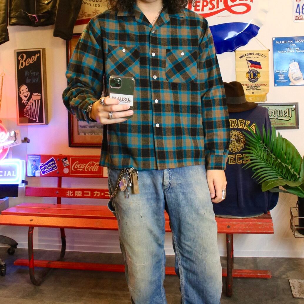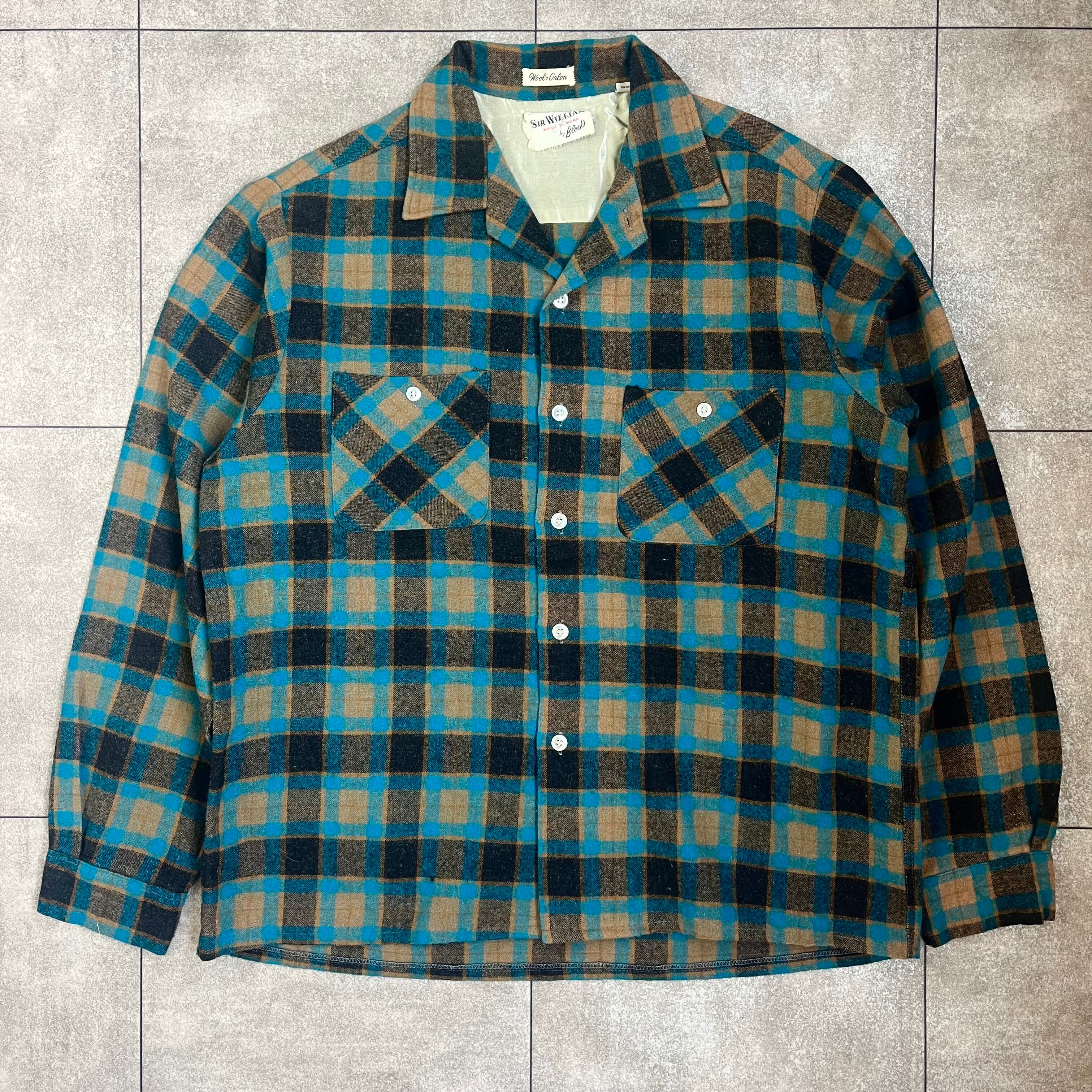 1960's "Sir William" wool check open color shirt